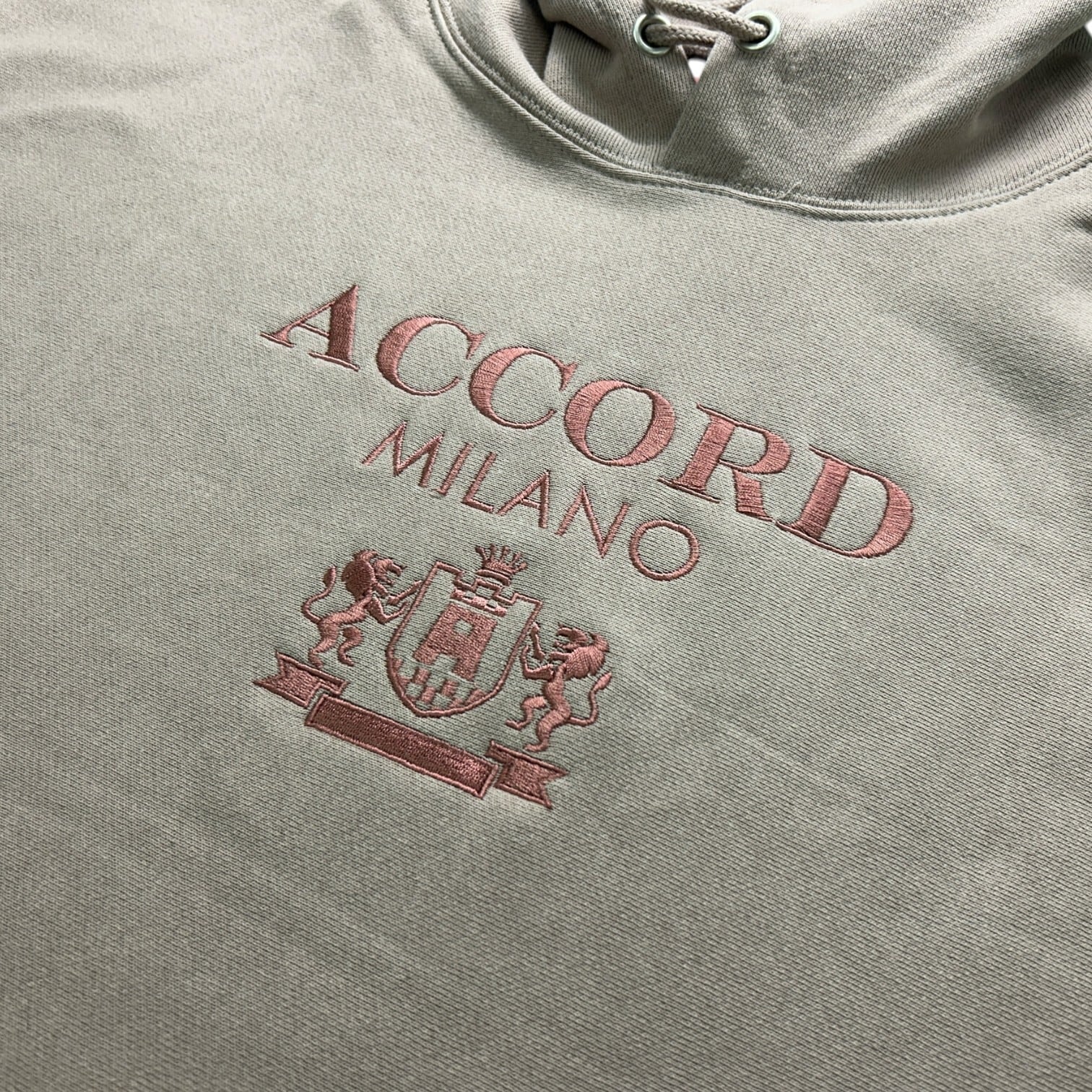 立体的な刺繍の表情が、無地のフーディに上品な存在感を添えます。