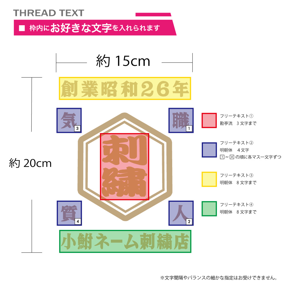 屋号のように入れても、好きな言葉を入れても、
